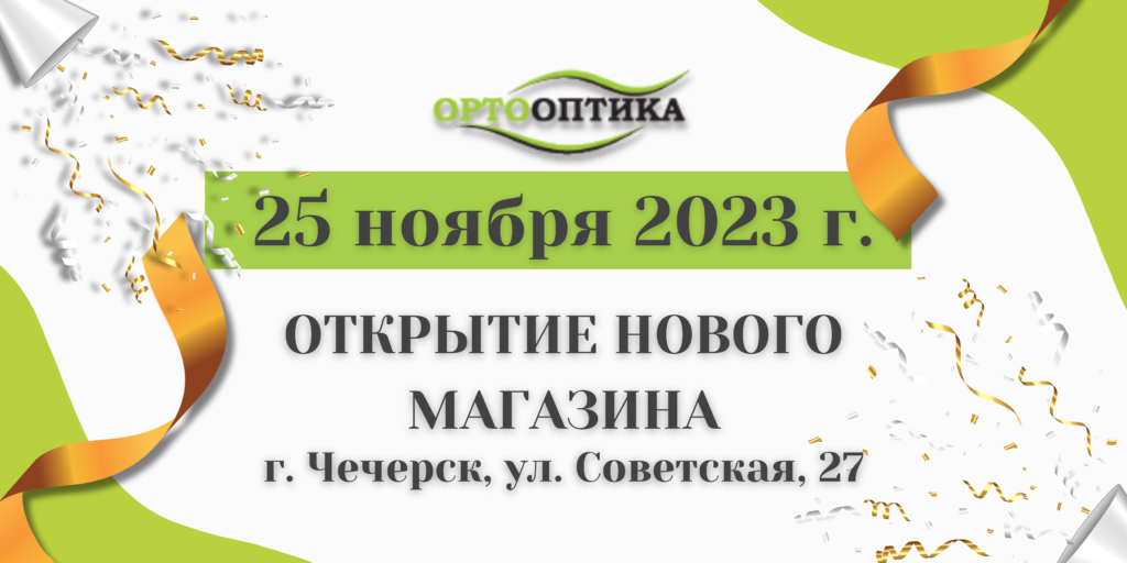 Мы рады вам сообщить, что в субботу 25 ноября 2023 г. ОРТООПТИКА открывает двери нового салона в г. Чечерск.